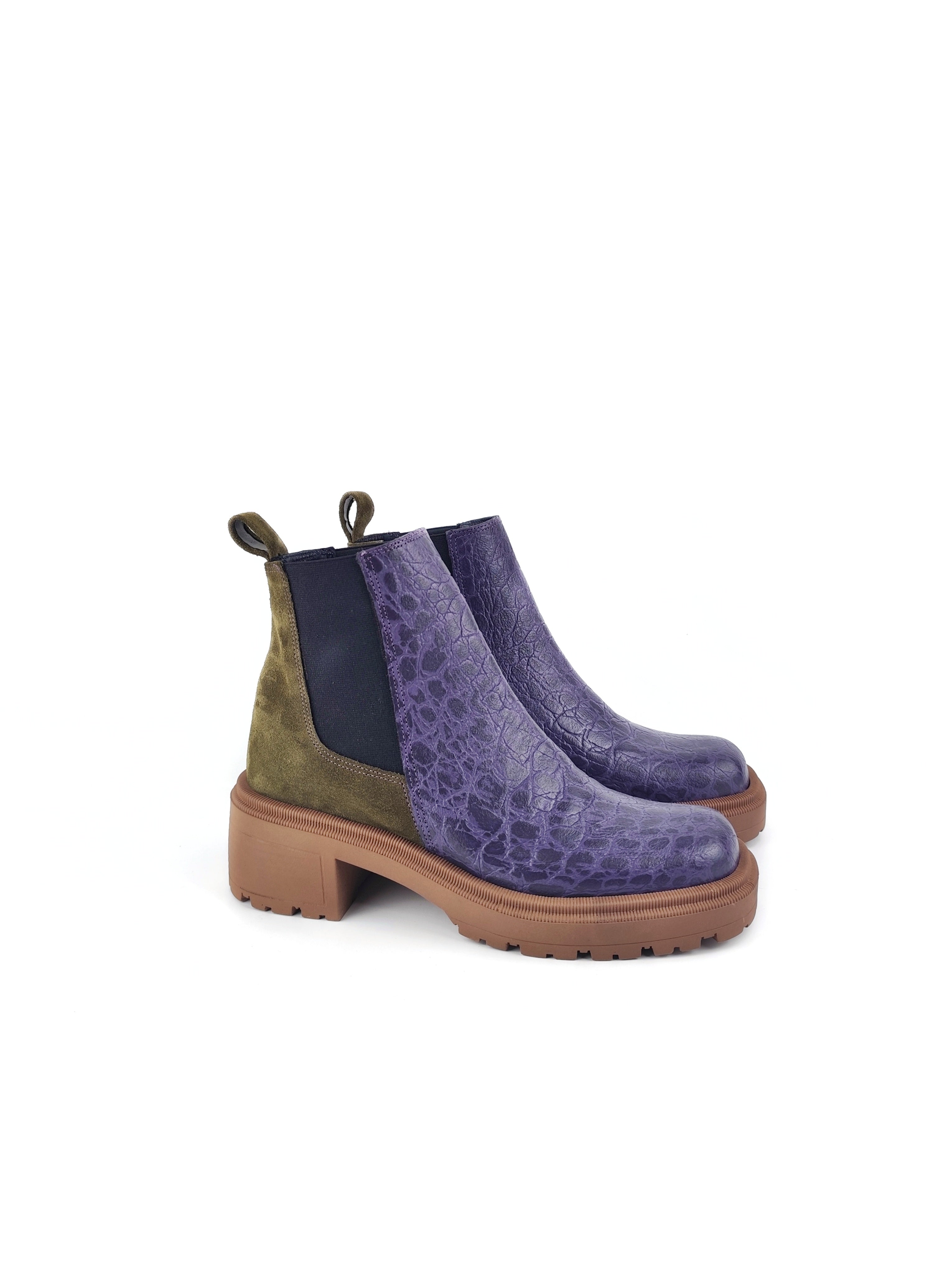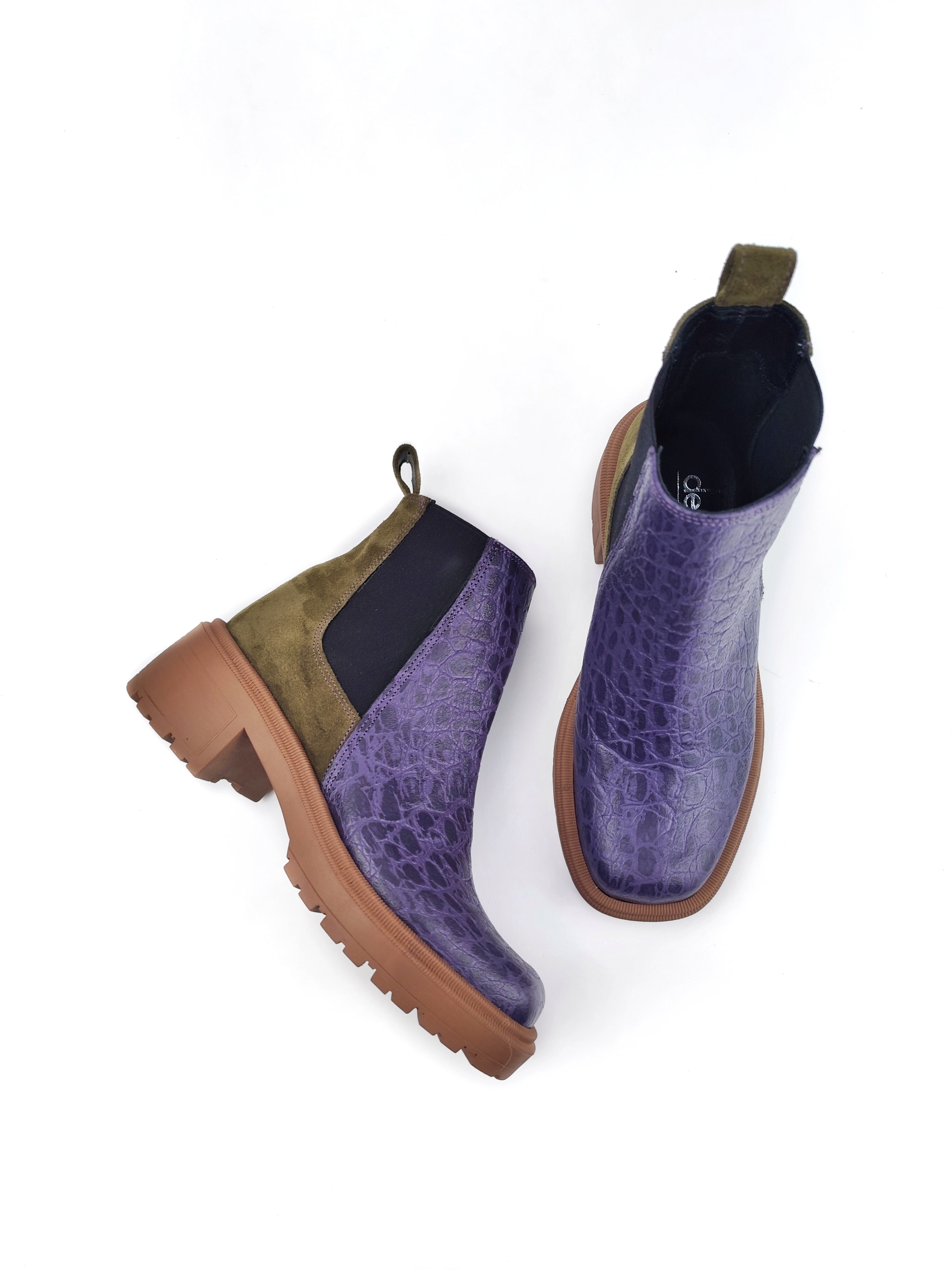 __________________________________________________________ Handmade leather square-toe chelsea boots with a fun color combination. The ultimate "it" boots of the season. Ideal for girls who can stand laces, too. Wear our ABIGAIL boots with loose suits for an androgynous style. They can also elevate your baggy, loose jeans or your girly dresses.