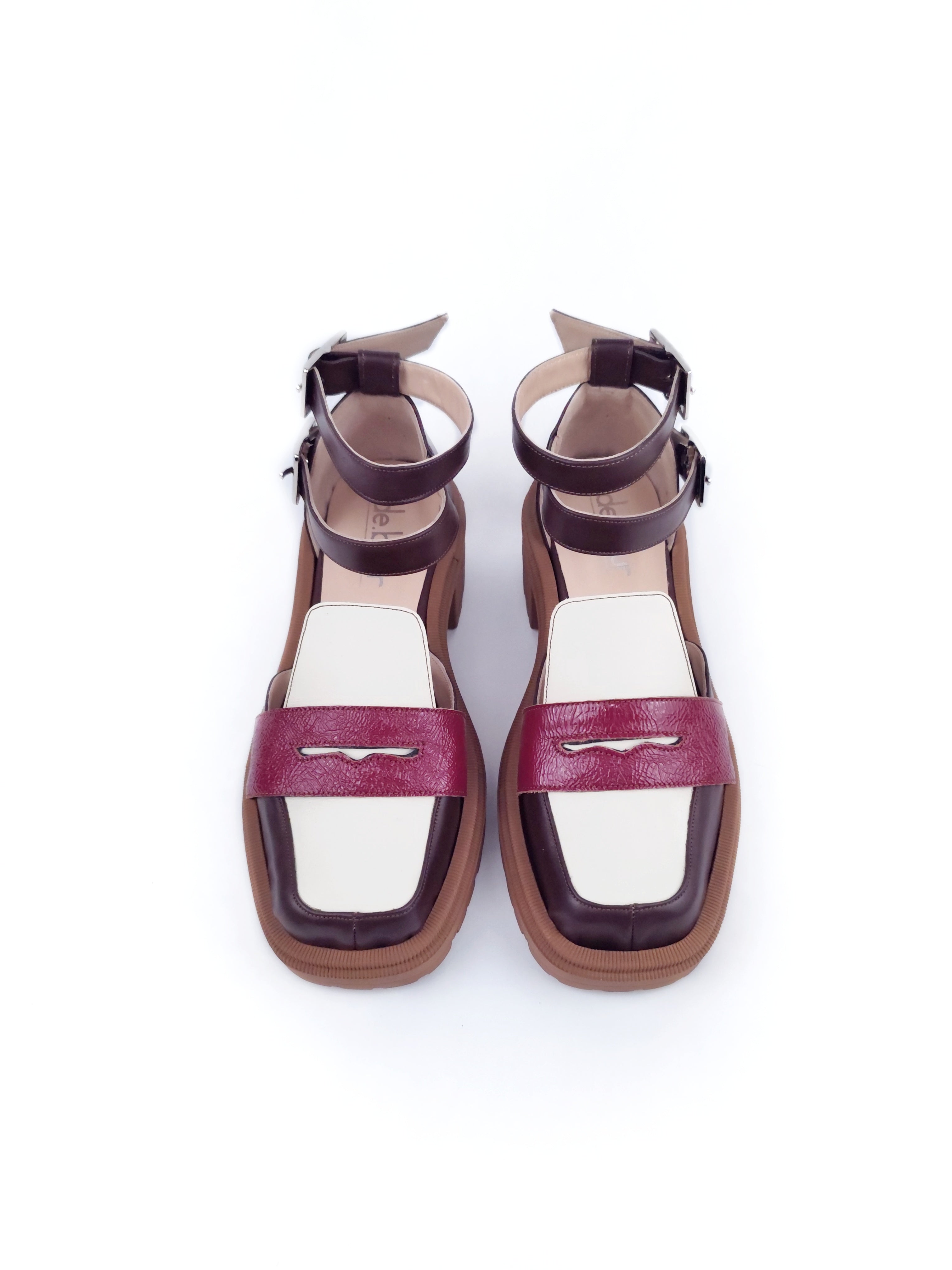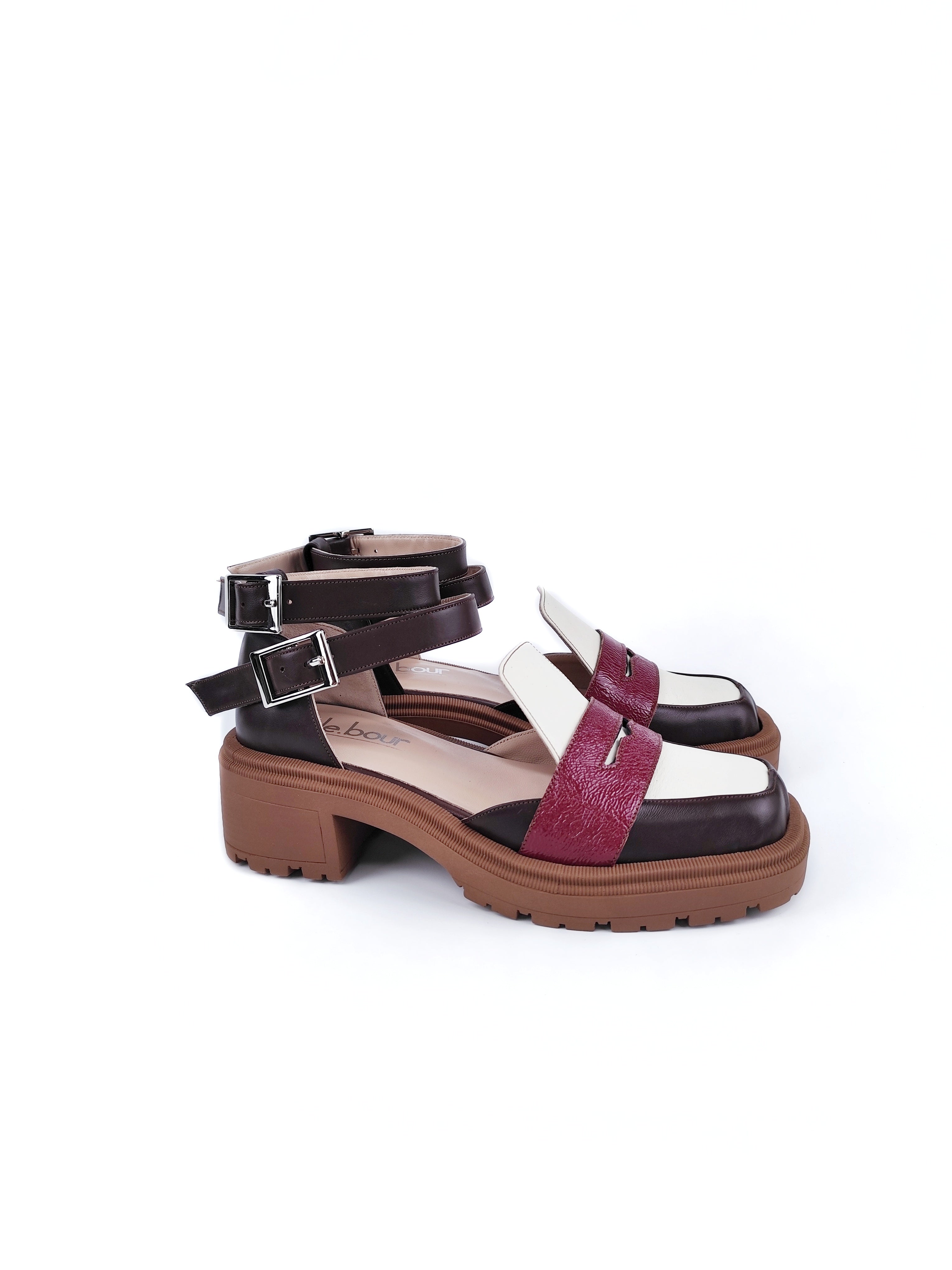 CASSIDY BROWN/ WINE RED STRAPPY MOCASSINS